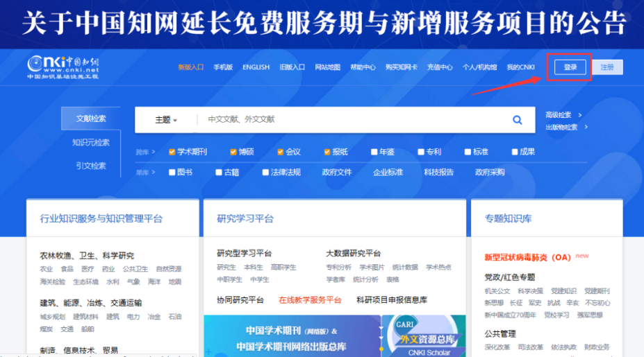 1.进入中国知网首页(https://www.cnki.net)点击右上角“登录”按钮