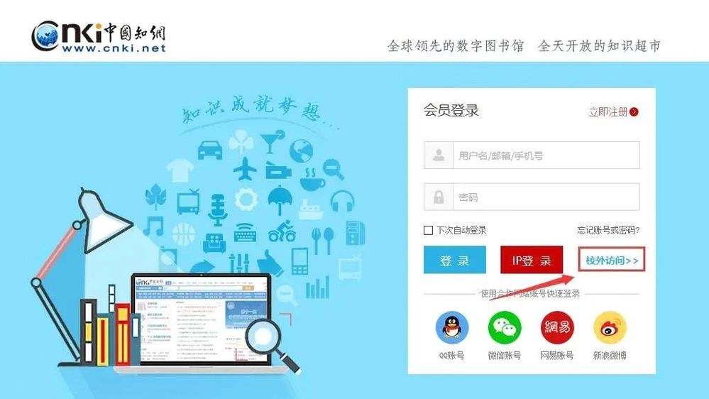 2.在“会员登录”页面选择“校外访问”