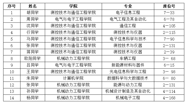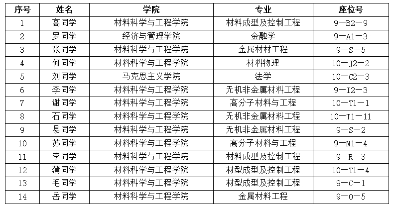五、南区考研学习室考研成绩前十及优秀学生名单
