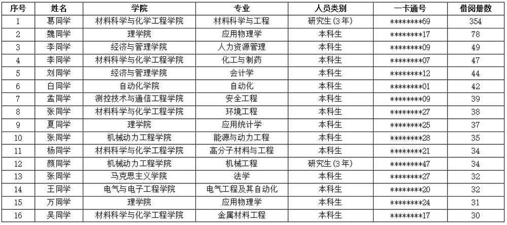 三、2023年度图书馆借阅三十册学生名单