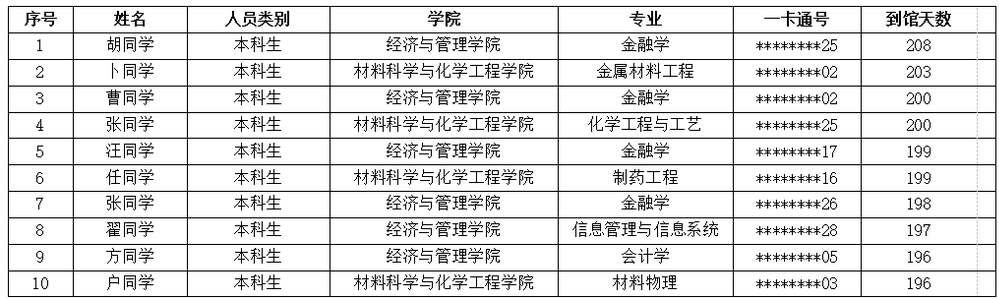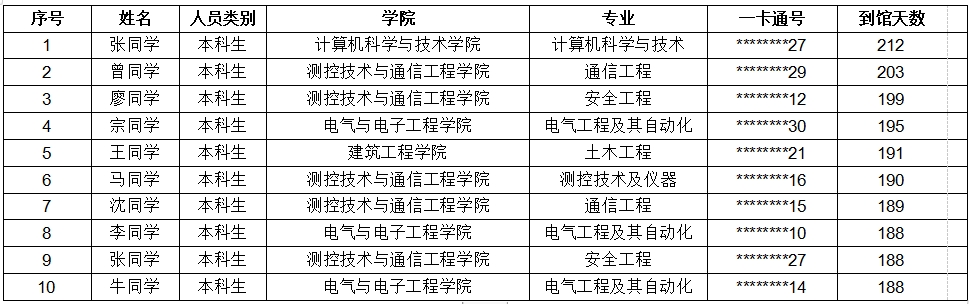 二、2023年度南区到馆时长前十名学生名单